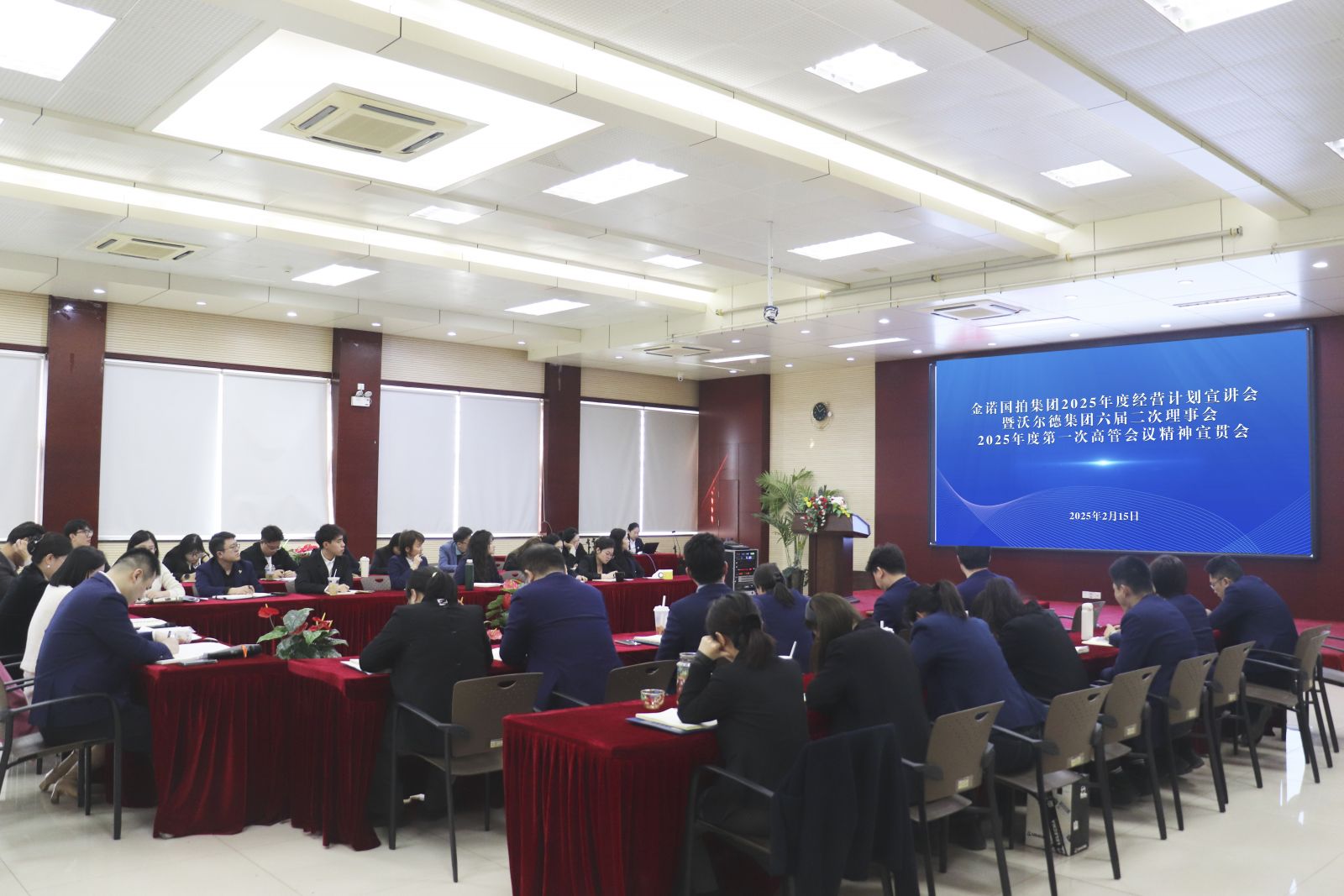 2月15日,金諾國拍集團組織召開2025年度經(jīng)營計劃宣講會暨沃爾德集團六屆二次理事會、2025年度第一次高管會議精神宣貫會。沃爾德集團總裁、金諾國拍集團董事長商雪梅,金諾國拍集團總裁位琳出席會議,全體駐濟管理人員參加會議。